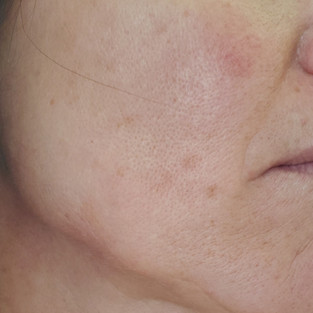šThe pic on the left is unfiltered. I'm most sad that I didn't take a before pic, but at least you can still see the red cheek (rosacea) and the 2 age spots below right next to my mouth.